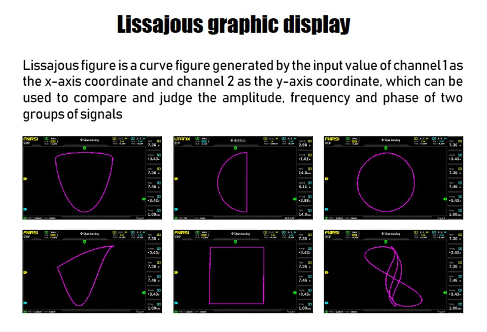 17: функция графического дисплея Lissajous может использоваться для определения амплитуды, частоты и фазового контраста двух групп сигналов