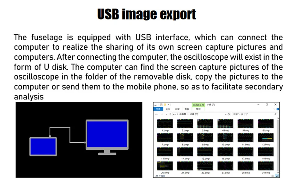 16: оснащен интерфейсом USB, который может быть подключен к компьютеру, чтобы поделиться скриншотами с компьютером, что удобно для вторичного анализа