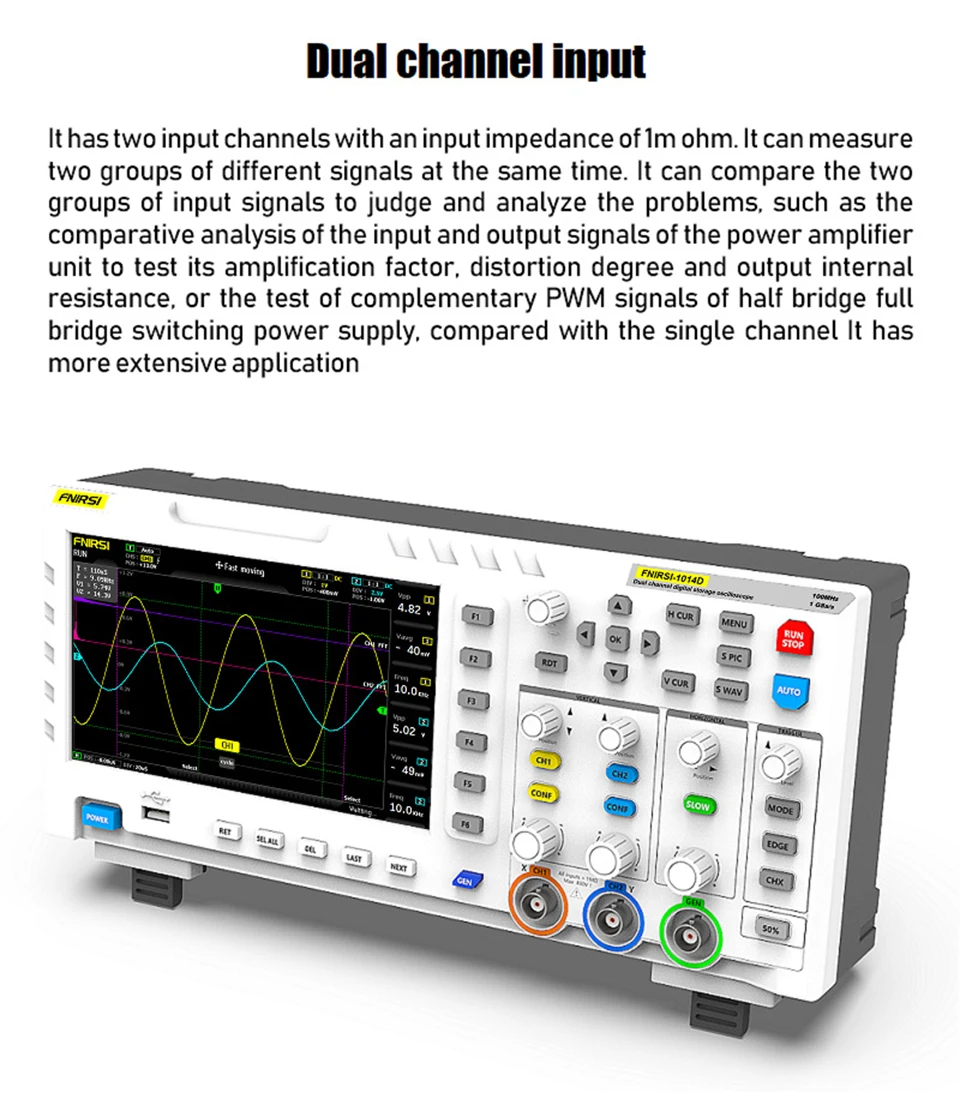 Цифровой осциллограф 1014D, частота дискретизации 1 Гвыбс, двухканальный генератор входных сигналов, osiloскоп цифровой, 1 ГБ, устройство хранения
