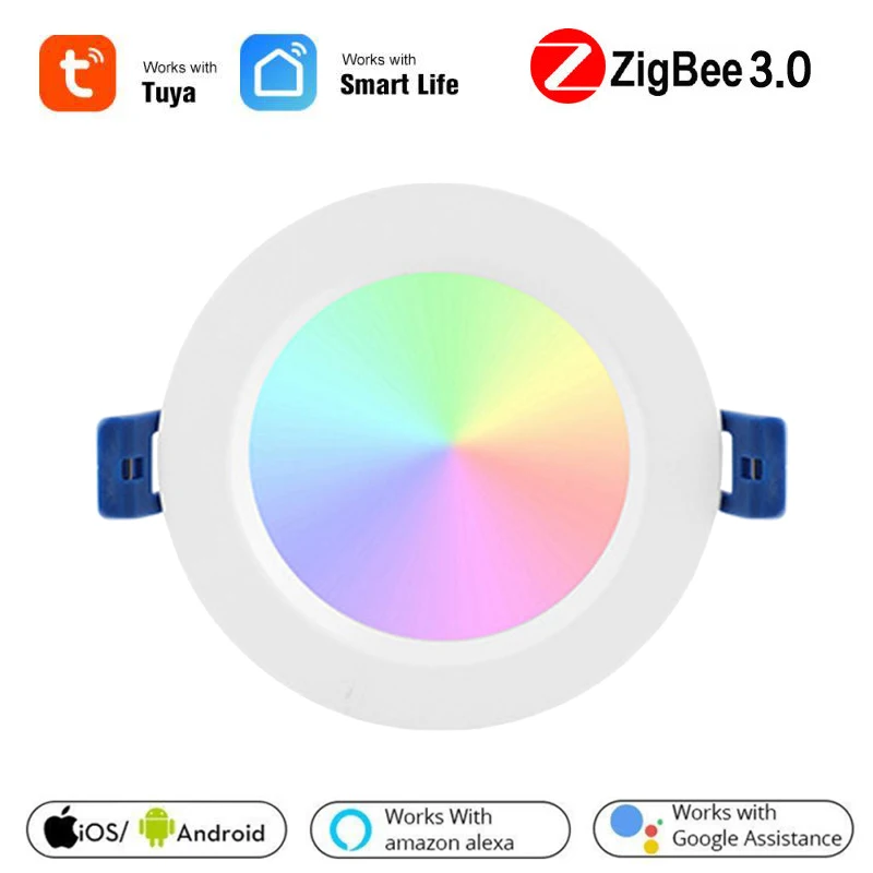 Умный светодиодный светильник Tuya Zigbee, круглый потолочный светильник с поддержкой Alexa и Google Home, 10 Вт12 Вт, RGBCW, 3,0