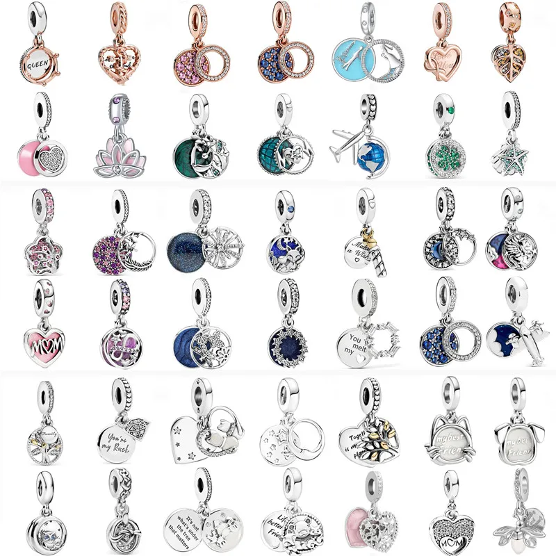 Бусины-подвески серебристого цвета для браслета, 45 видов