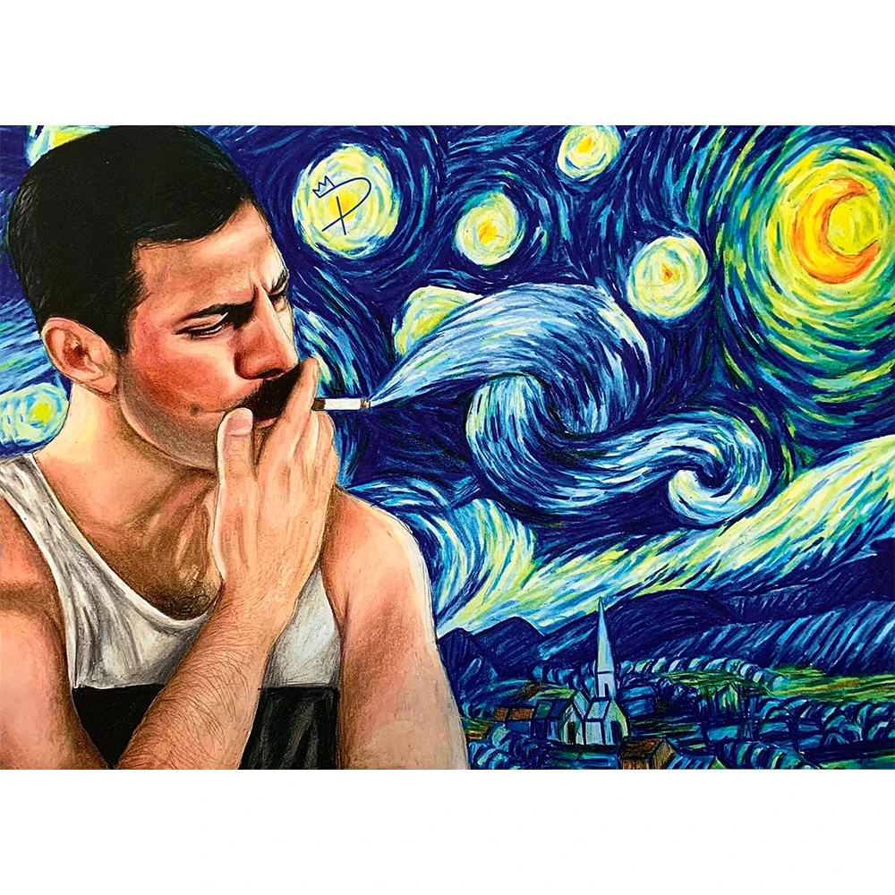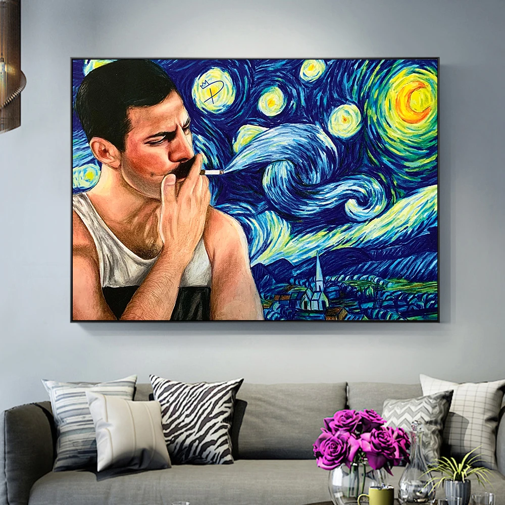 Картина на холсте Freddie Mercury, богемные постеры и принты рок, музыка, звезды, Ван Гог, звездная ночь, Настенная картина для гостиной