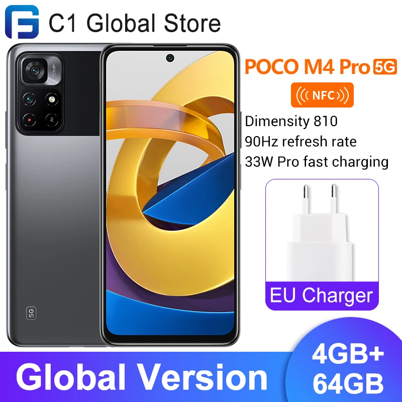 Глобальная версия POCO M4 Pro 5G 4 Гб + 64 Гб/6 ГБ + 128 ГБ с оригинальным зарядным устройством ЕС!