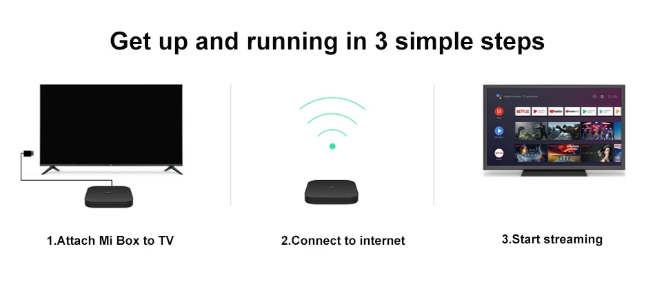 Mi Box S питается от Android 9,0, прост в использовании и поддерживает голосовой поиск