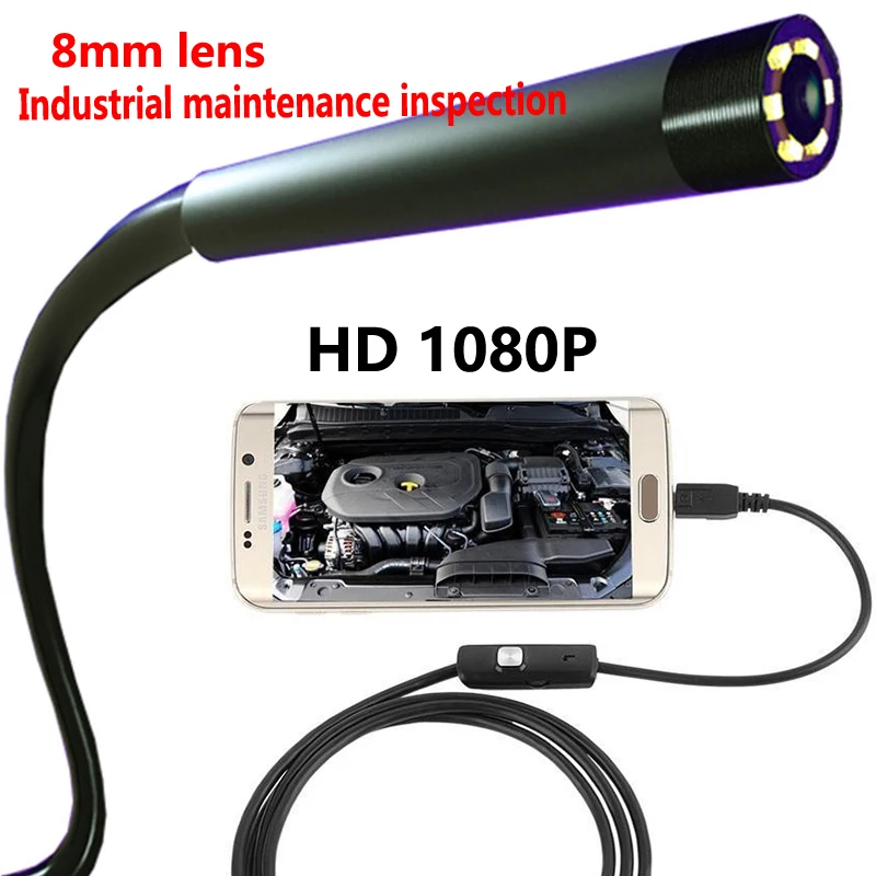 Водонепроницаемый эндоскоп с кабелем, 1080P, 8 мм, 6 светодиодов