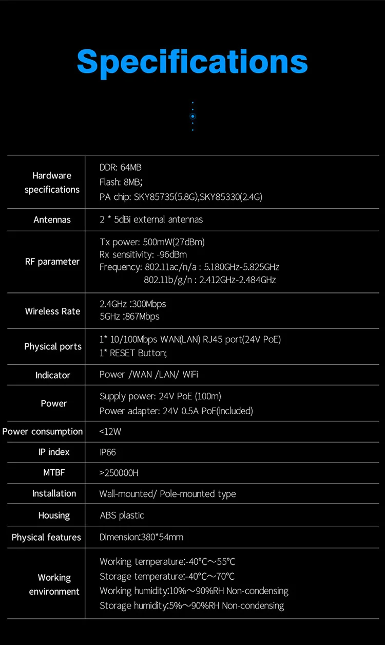 Усилитель сигнала Wi-Fi, 1200 Мбитс, 1200 ГГц5 ГГц, 2,4 Мбитс