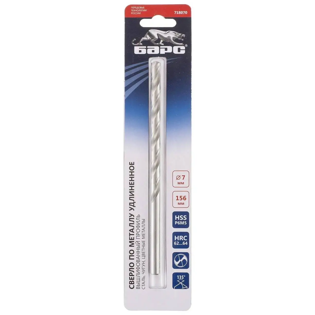 Барс Сверло спиральное по металлу, 7 х 156 мм, р6м5, удлиненное