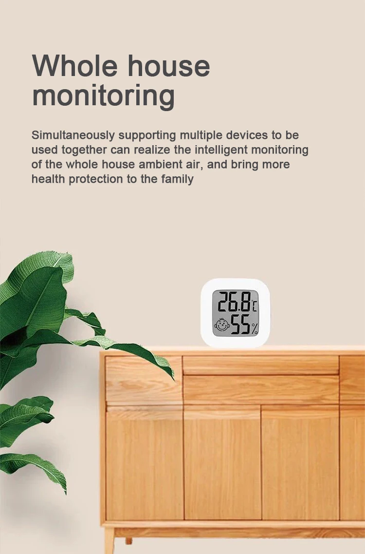 В основном используется для определения текущей температуры в помещении и влажности, чтобы понять значение температуры и влажности в окружающей среде в реальном времени, чтобы сделать соответствующие улучшения, чтобы вы и ваша семья могли иметь здоровую и комфортную среду для жизни