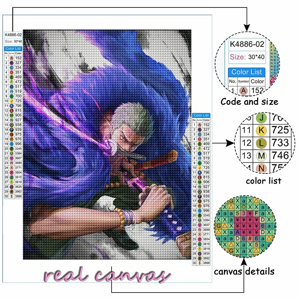 Алмазная живопись 5d сделай сам, Аниме One Piece Roronoa Zoro, муль...