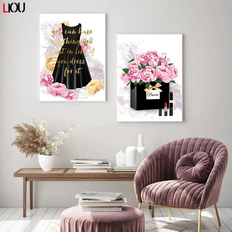 Скандинавские плакаты, HD печать, Картина на холсте, Париж, парфюм, роза, модная Роскошная помада, настенные картины для украшения гостиной