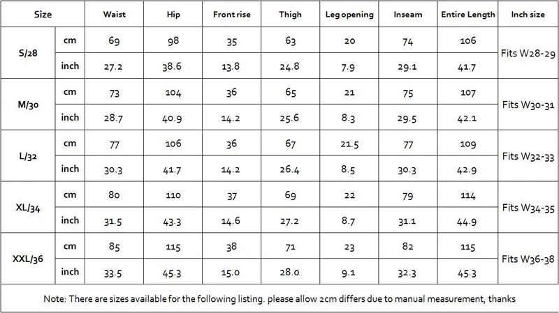 Есть разница до 7 см, когда мы тянем эластичную талию. Размер S (28) подходит всем, кто обычно носит W28-29, размер M (30) подходит W30-31, размер L (32) подходит W32-33, размер XL (34) подходит W34-35, размер XXL (36) подходит W36-37