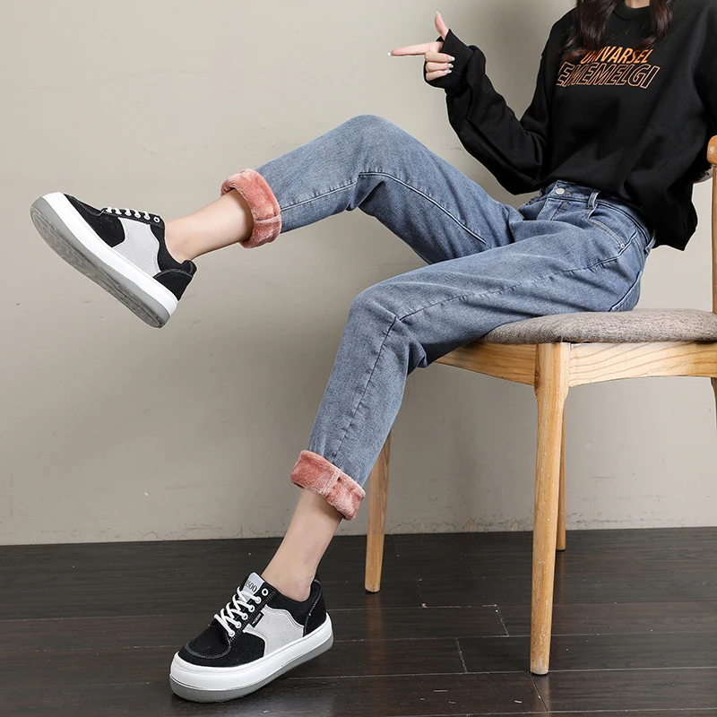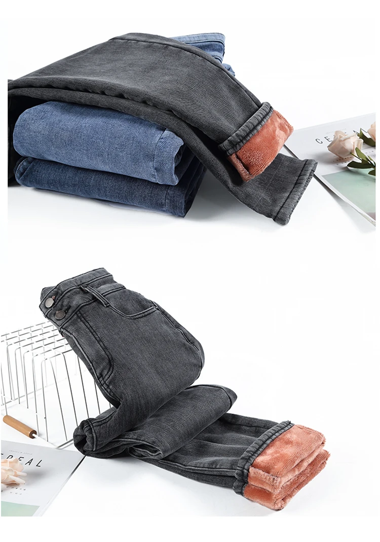 Новые зимние женские флисовые джинсы с высокой талией, бархатные утепленные сохраняющие тепло свободные брюки Harlan, женские джинсовые брюки