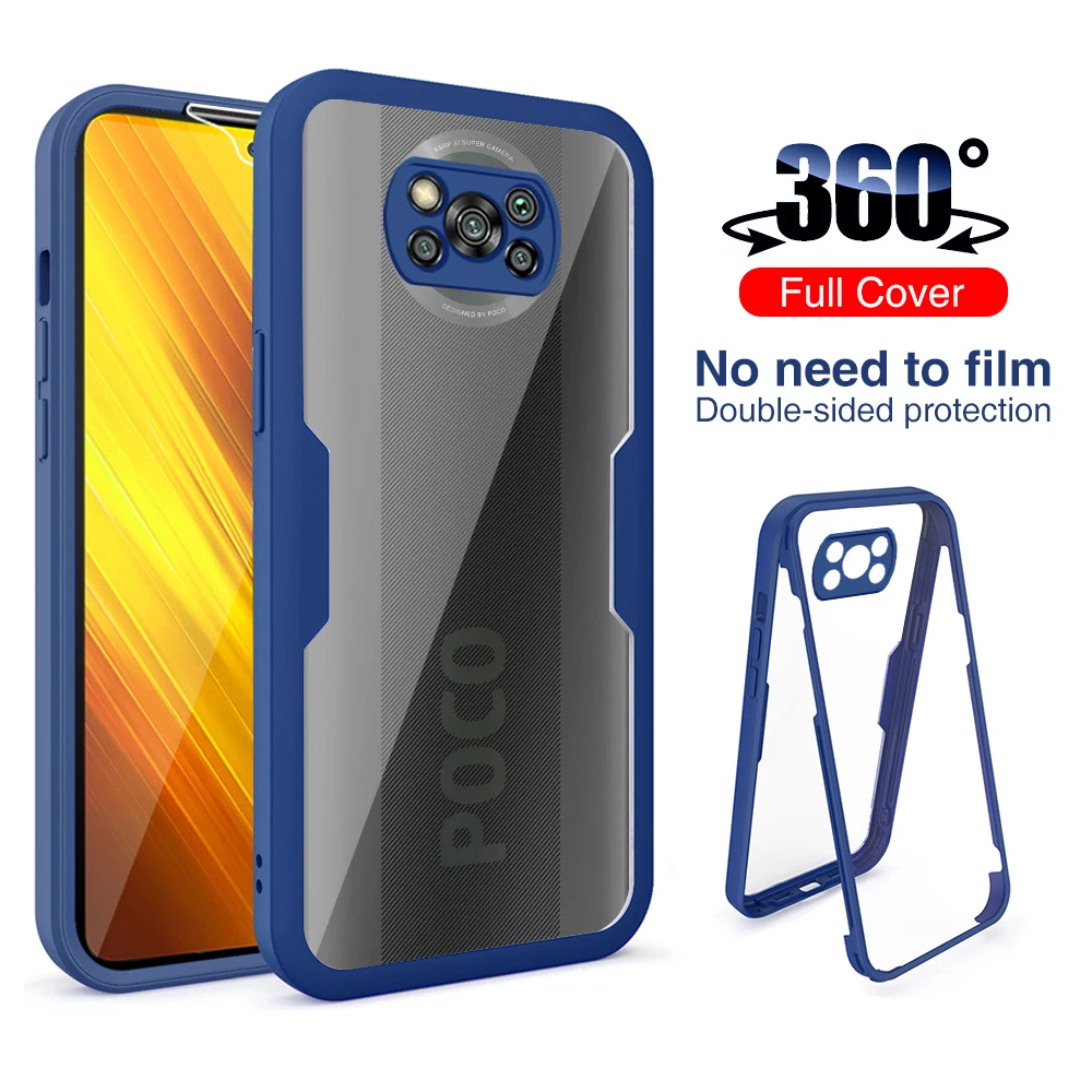 Двухсторонний чехол для Xiaomi Redmi Note 10S 9S 9T 9 POCO X3 NFC M3 10 9A 9C 11 Pro с полной защитой 360 градусов, прозрачный чехол из поликарбоната