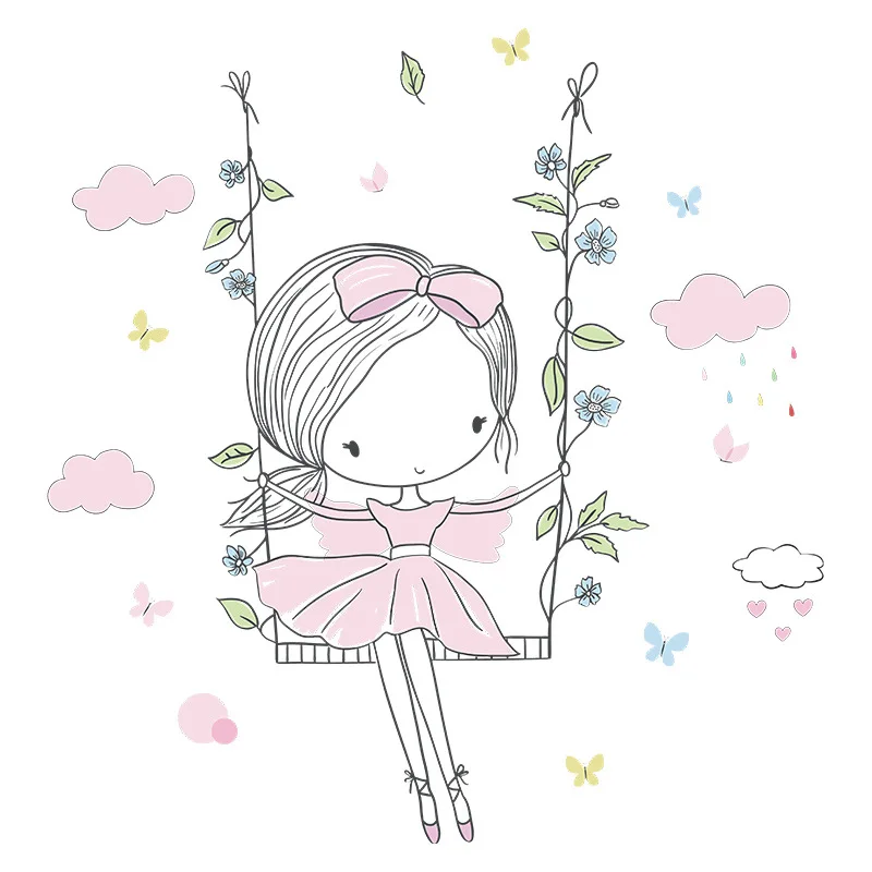 Маленькая девочка качающаяся детская спальня вход в детский сад коммерческий настенный Ландшафтный домашний декор настенные наклейки обои