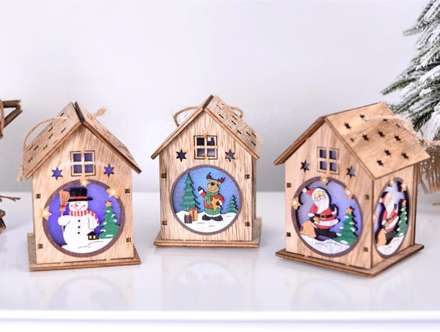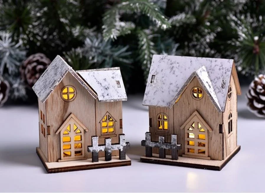 Рождественский светодиодный светильник, деревянный домик, светящийся домик, рождественские украшения для дома, сделай сам, Рождественские елочные украшения, подарки для детей на новый год 2022
