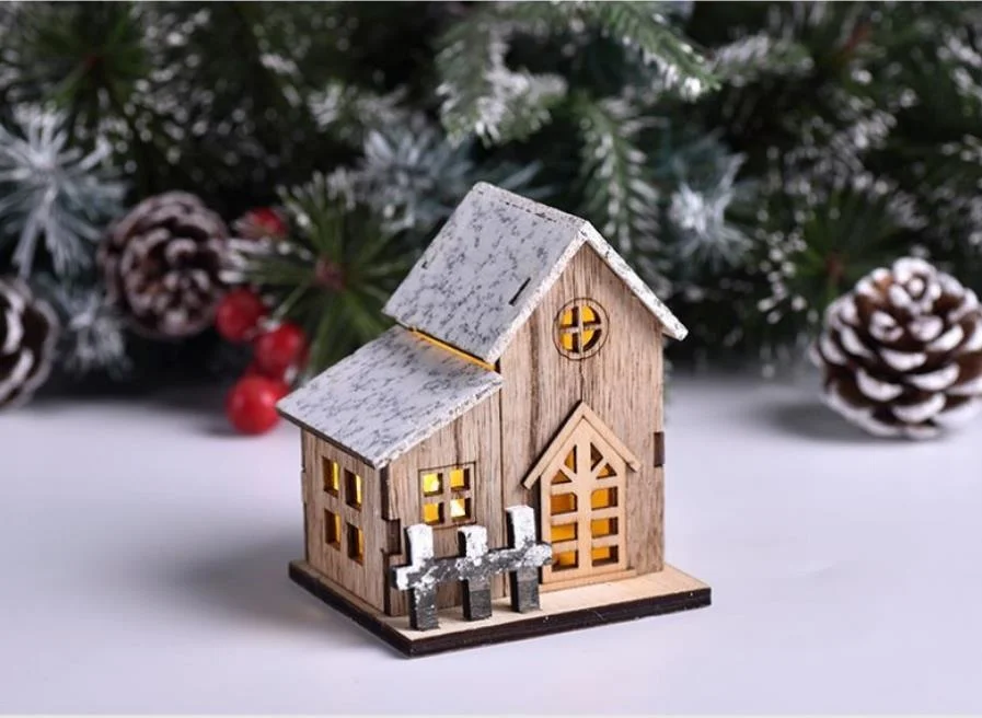 Рождественское новое украшение, маленький деревянный дом, светодиод...