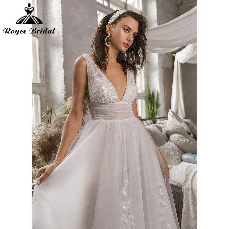 Женское свадебное платье в богемном стиле, платье А-силуэта с глубо...