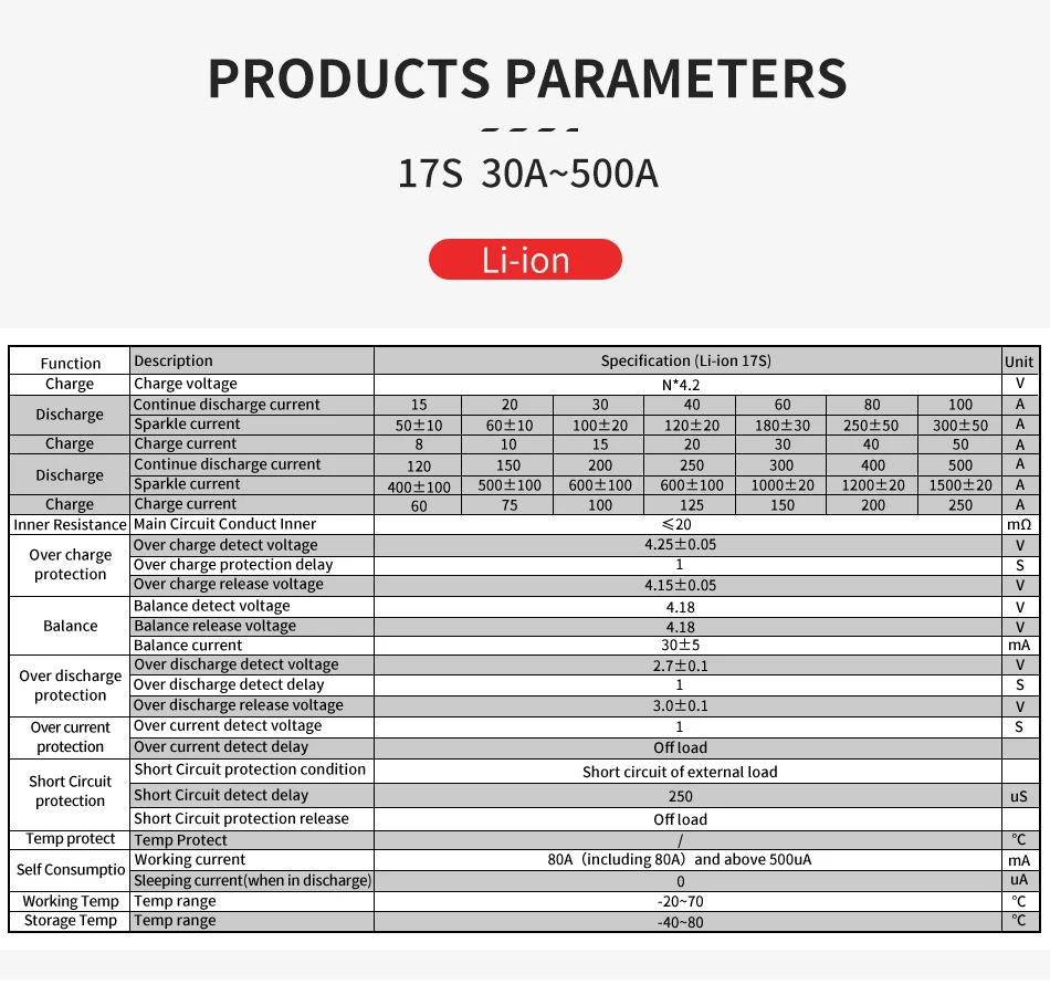 BMS Li-Ion 17 DALY s 60v 30A 40A 50A 60A 100A 120A 150A 200A 250A 300A 400A 500A bms com