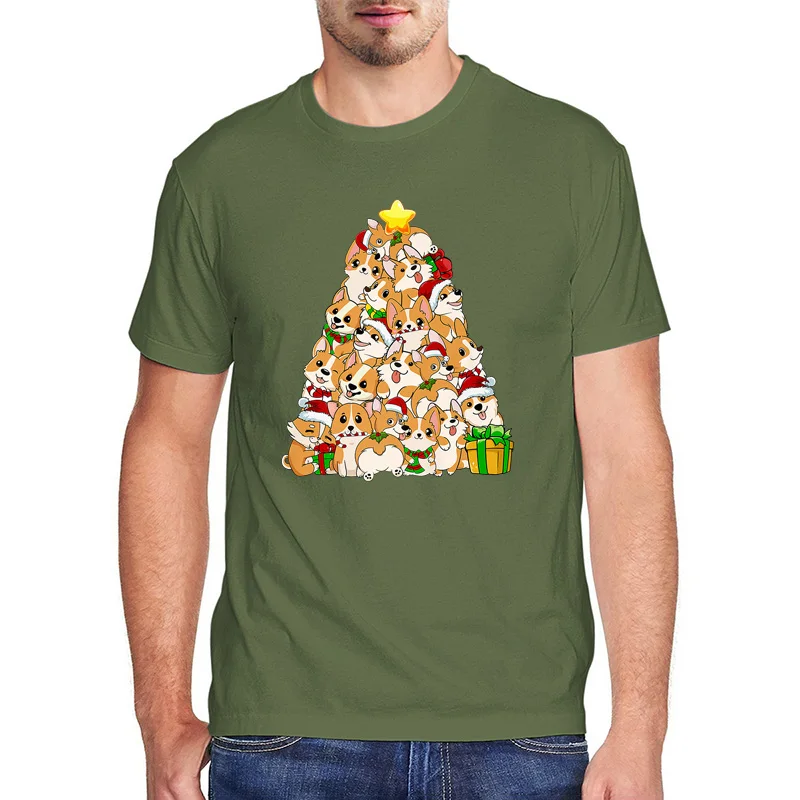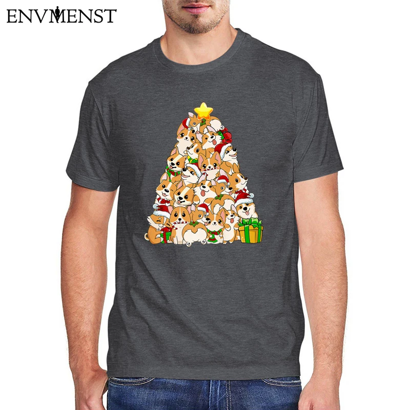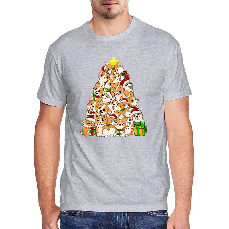 100% хлопковая футболка с изображением собаки, топы корги, Рождественская елка, собака, Санта-Клаус, рождественские подарки, футболка для мужчин, kawaii, одежда, футболка