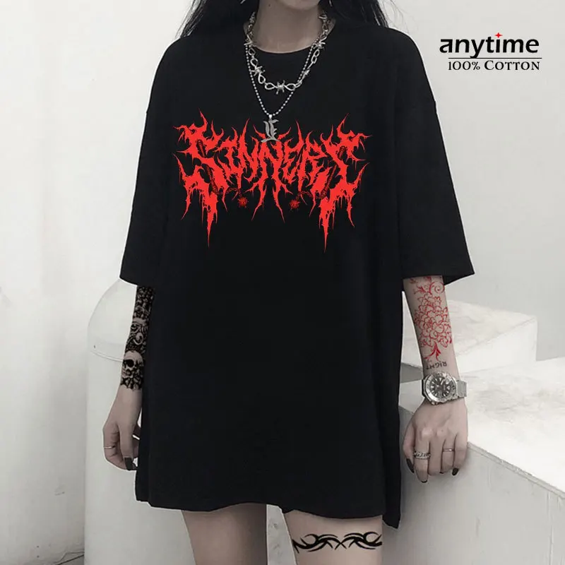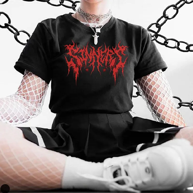 Футболка женская оверсайз с графическим принтом, Готическая Темная футболка в стиле K-POP, уличная одежда в стиле Харадзюку, рубашка в стиле хип-хоп, красный цвет