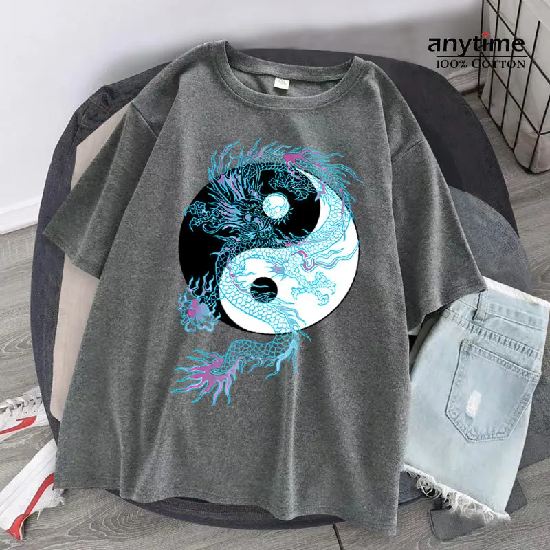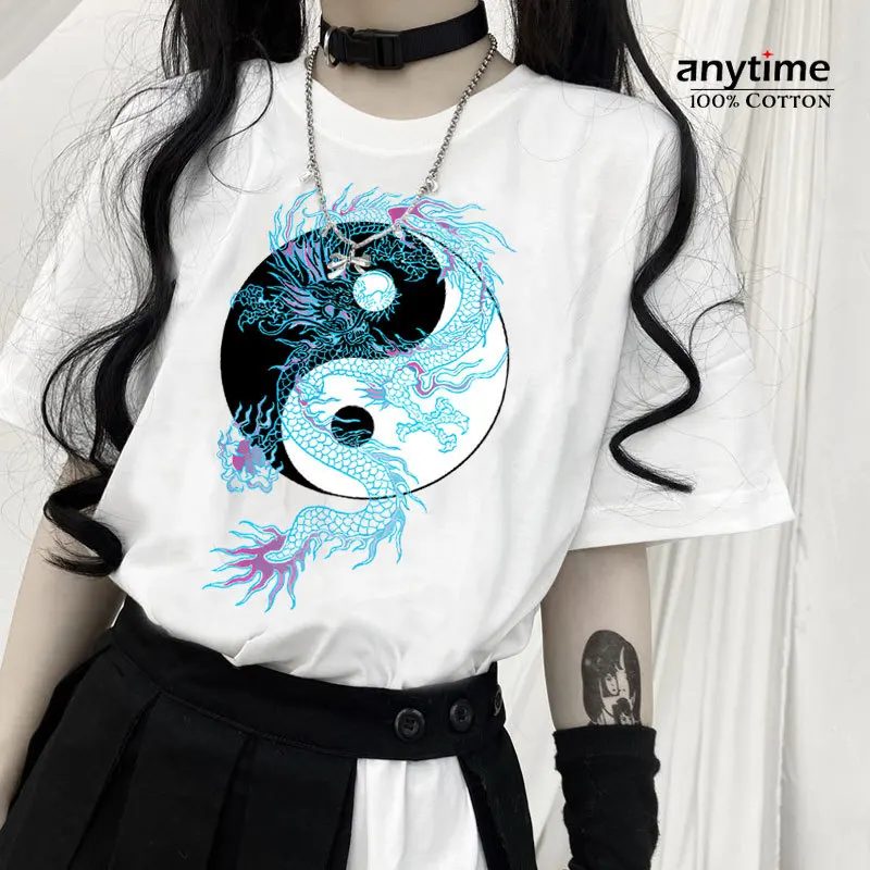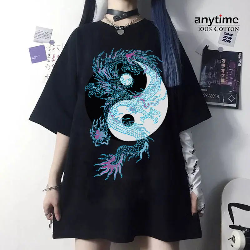 Футболка женская оверсайз с принтом дракона, уличная одежда в стиле ретро, свободная повседневная рубашка в стиле ольччан, Харадзюку, лето