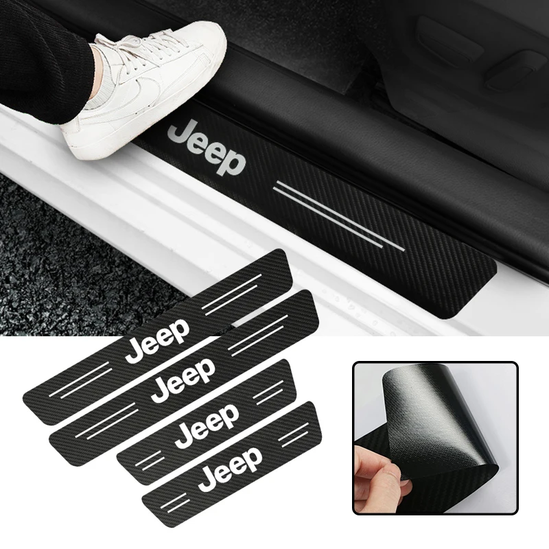 Автомобильная кожаная защитная дверь из углеродного волокна наклейка на порог аксессуары для Jeep Renegade Compass Wrangler Patriot Grand Cherokee Liberty Rubicon Cherokee Commander Trailhawk