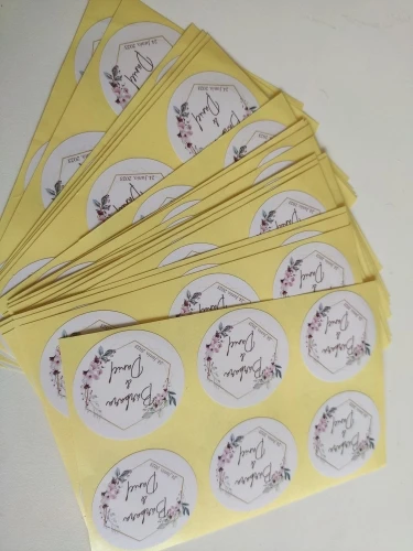 Наклейки в порядке, хорошего качества. Но очень медленная доставка. Это заняло много времени, много времени, чтобы отправить заказ. Мне нужно было доставить приглашения, и многие не смогли доставить их в назначенный срок при отсутствии наклеек. Мне пришлось напечатать больше в другом месте, чтобы иметь возможность доставить те, которые я ожидал, хотя это было поздно. Хорошее качество, но я бы не рекомендовал.