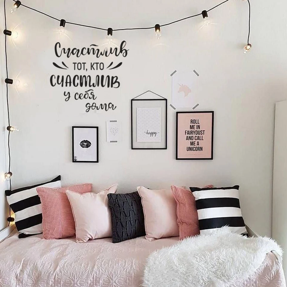 Интерьерная наклейка "Счастлив дома" Украшение для дома, квартиры