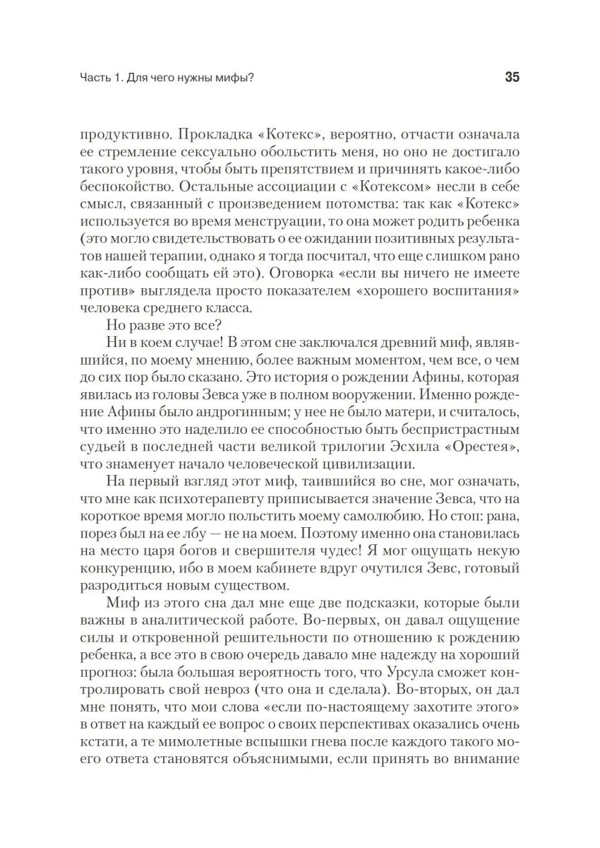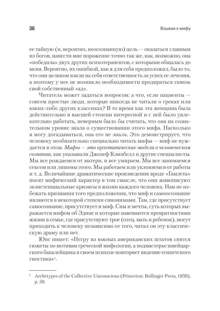 Мифы помогают нам найти смысл жизни в нашем запутанном, жестком, нелогичном мире. Ролло Мэй приводят примеры, когда именно осознавая влияние мифологических сюжетов на жизнь современного человека, клиенты получали облегчение своим душевным страданиям. Миф - это вечность, проламывающаяся сквозь время. За эту работу Ролло Мэй получил золотую медаль Американского психологического общества.