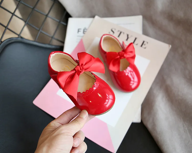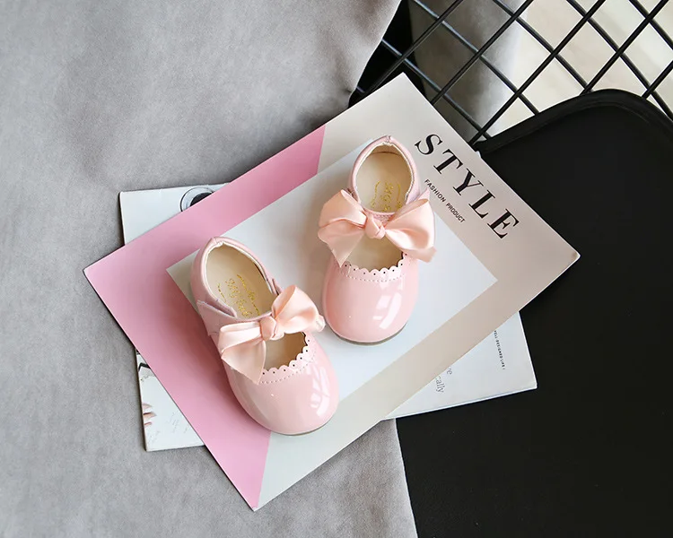 Туфли Детские демисезонные из лакированной кожи, с бантом, однотонные