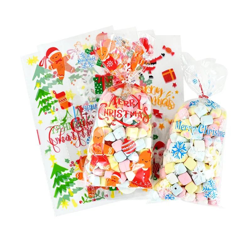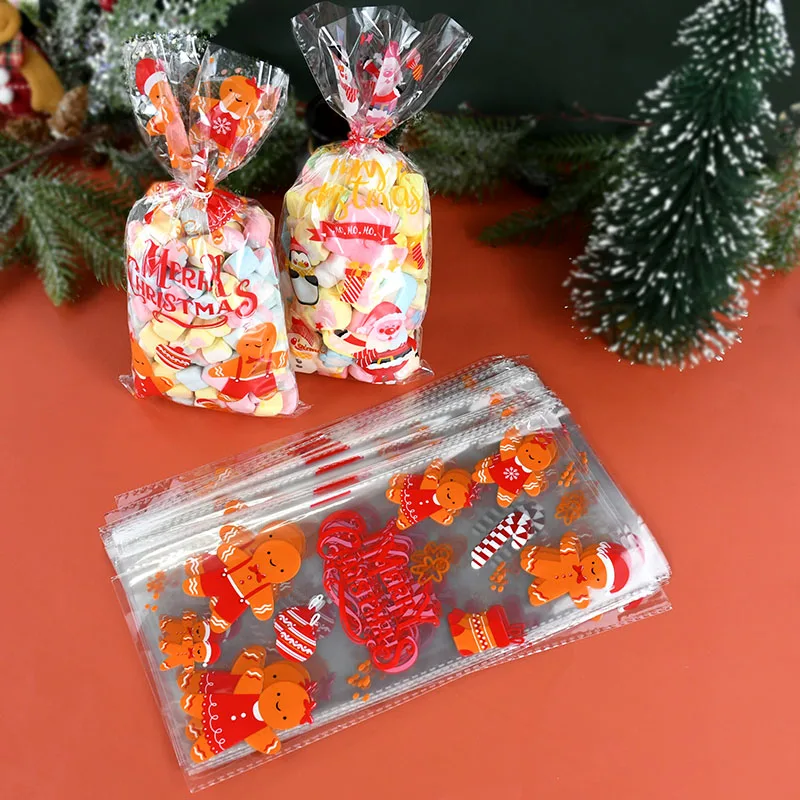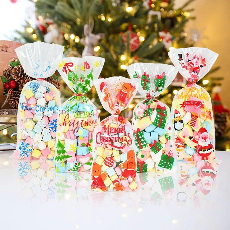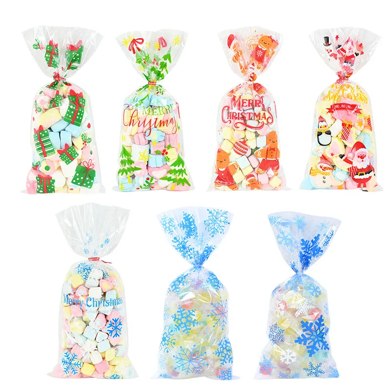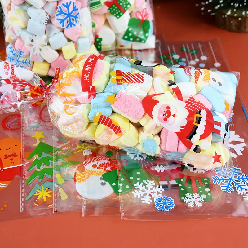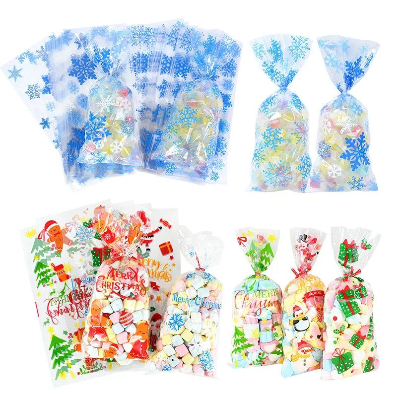 50 шт., прозрачные рождественские подарочные пакеты в виде снежинок