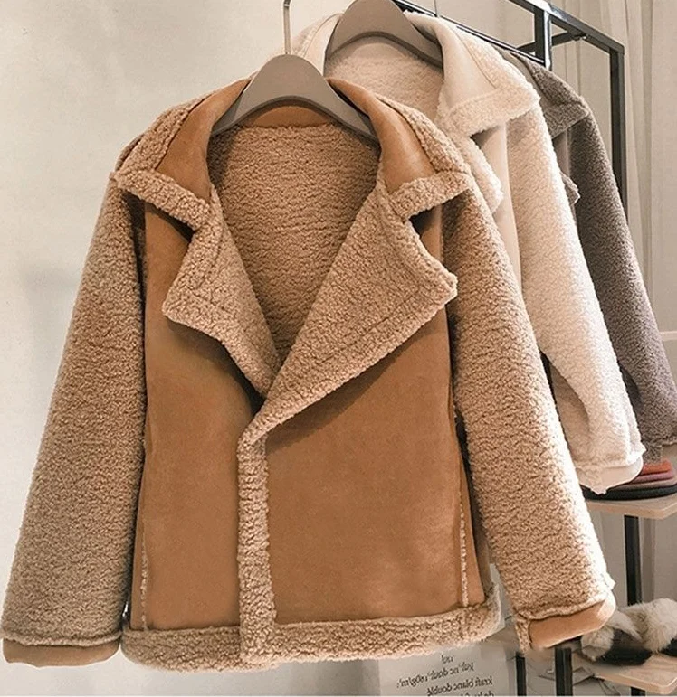 Женское осенне-зимнее пальто из овечьей шерсти, меховая Слитная утепленная куртка, теплая крупная модель