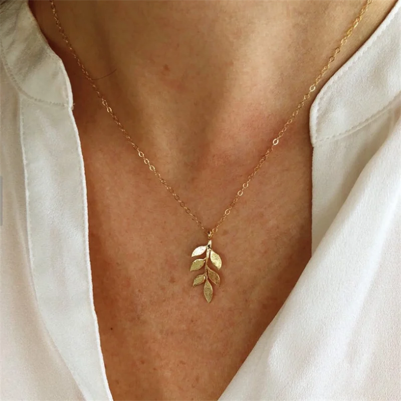 Ожерелье-чокер женское минималистичное с подвеской в виде листьев