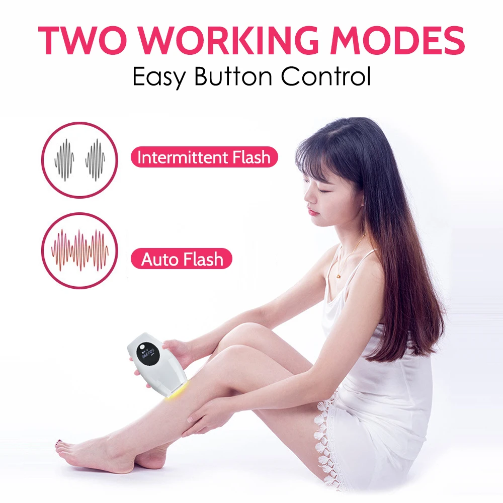 2. Восемь регулируемый светильник уровня интенсивности и двумя режимами мигания может широко подходят для разных типов кожи, может использоваться для удаления волос ног, рук, подмышек, зоны бикини, комод, задняя часть, подбородок и так далее.