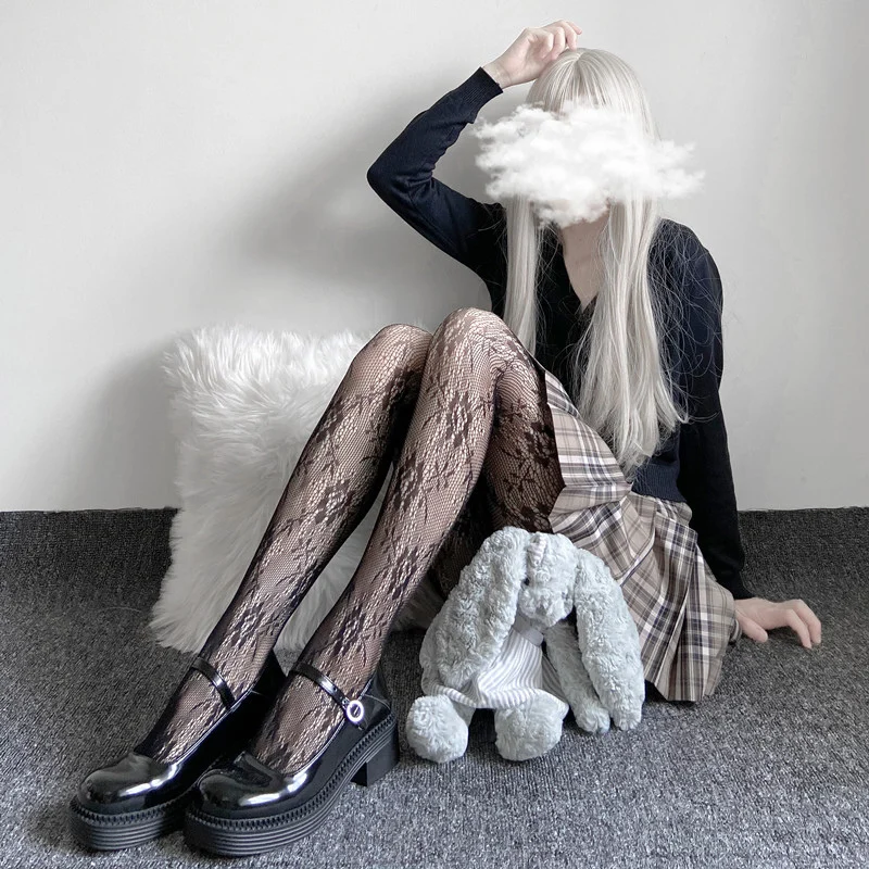 Чулки женские в сеточку, черныебелые, в готическом стиле, дышащие