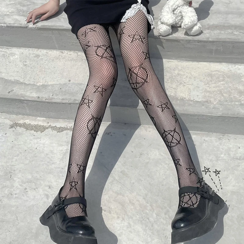 Модные колготки в стиле Ins, черные, белые, с рисунками из мультфильмов, женские чулки в сеточку с Луной и звездами, Чулочные изделия для косплея в стиле "Лолита"