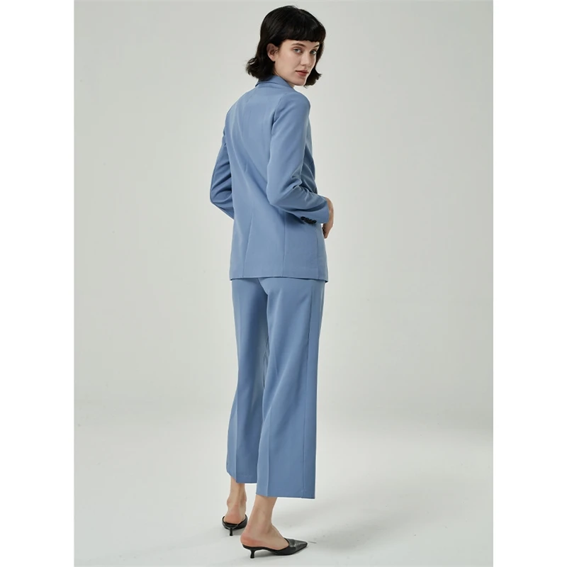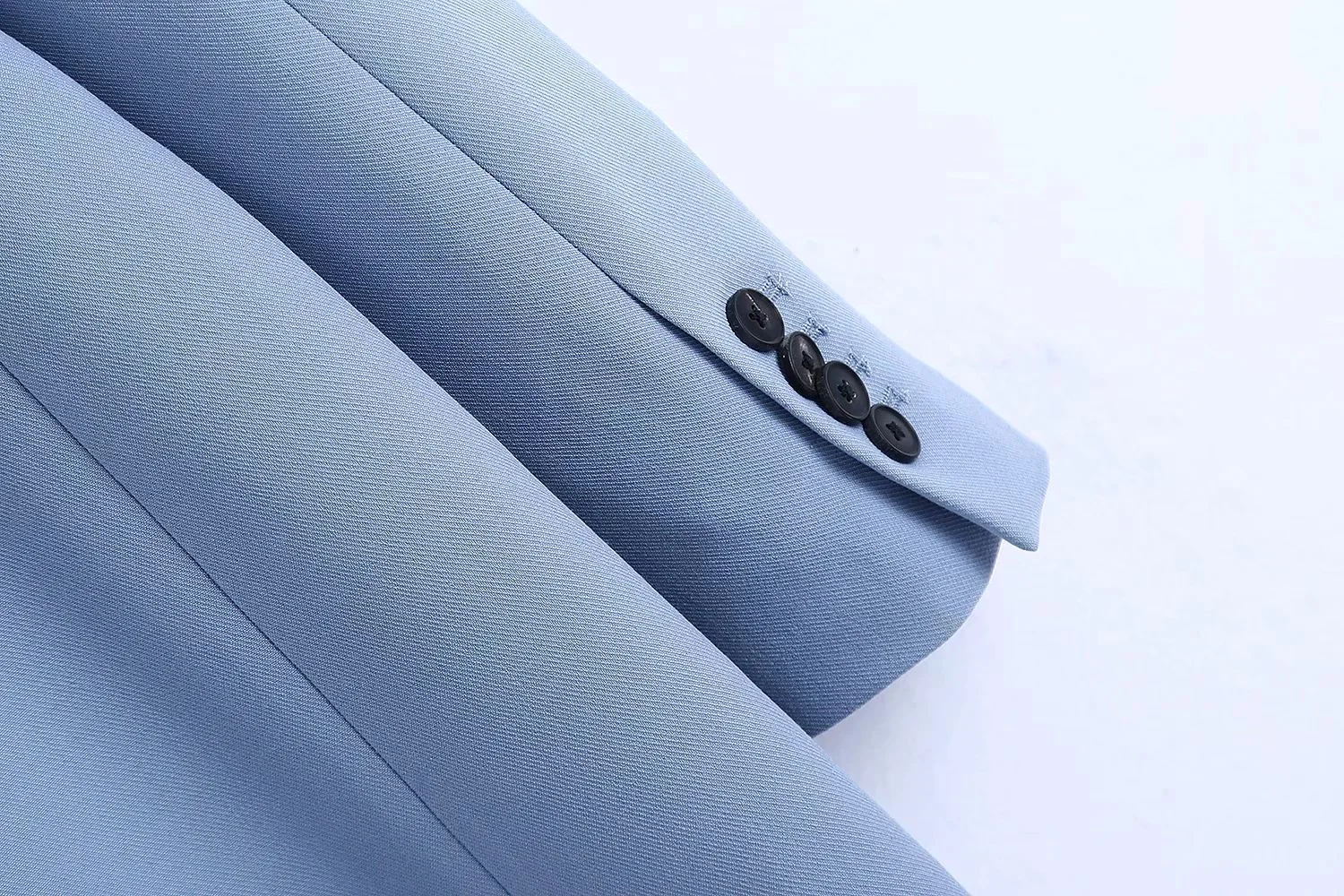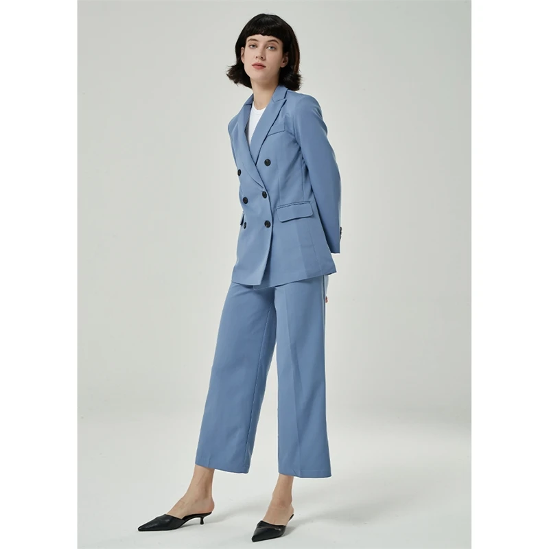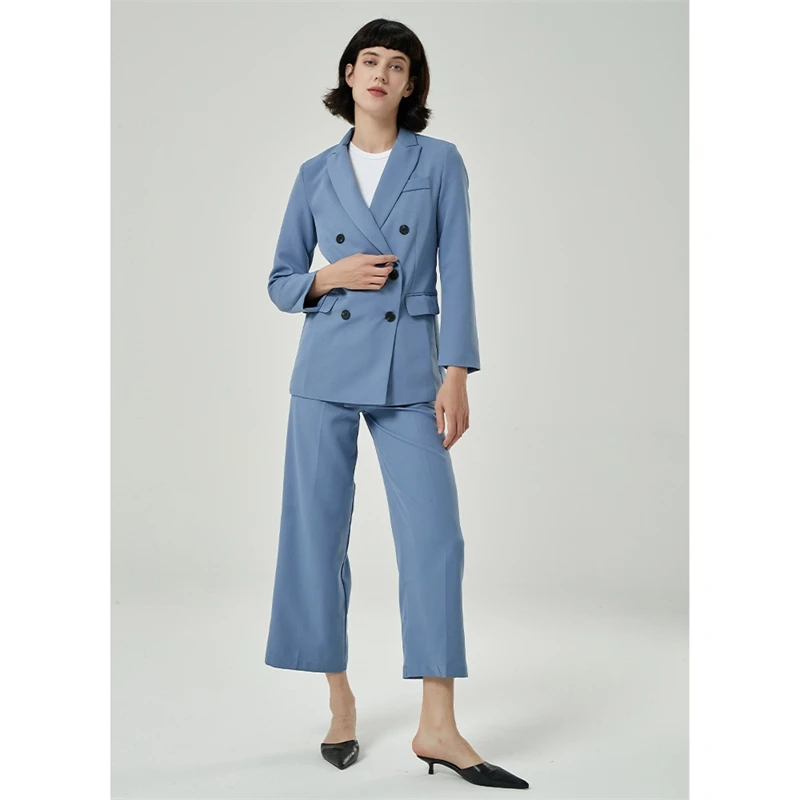 Женский костюм из двух предметов, голубой двубортный пиджак и повсе...