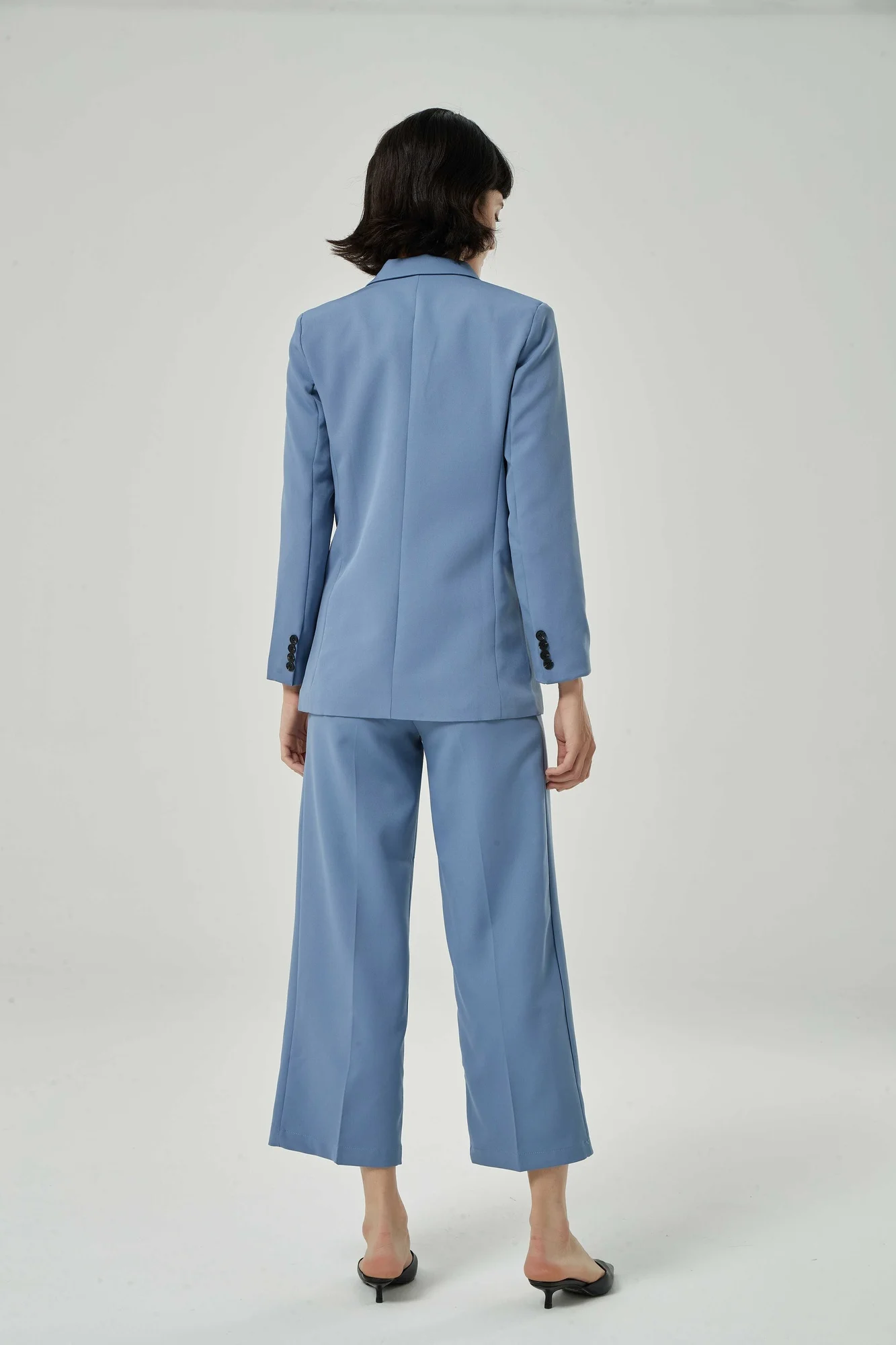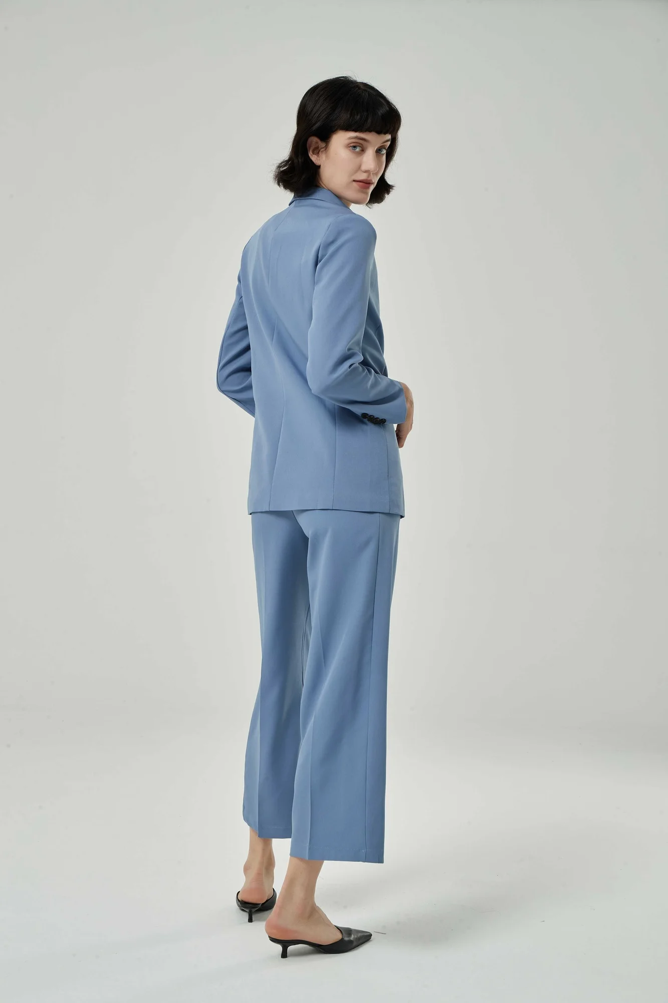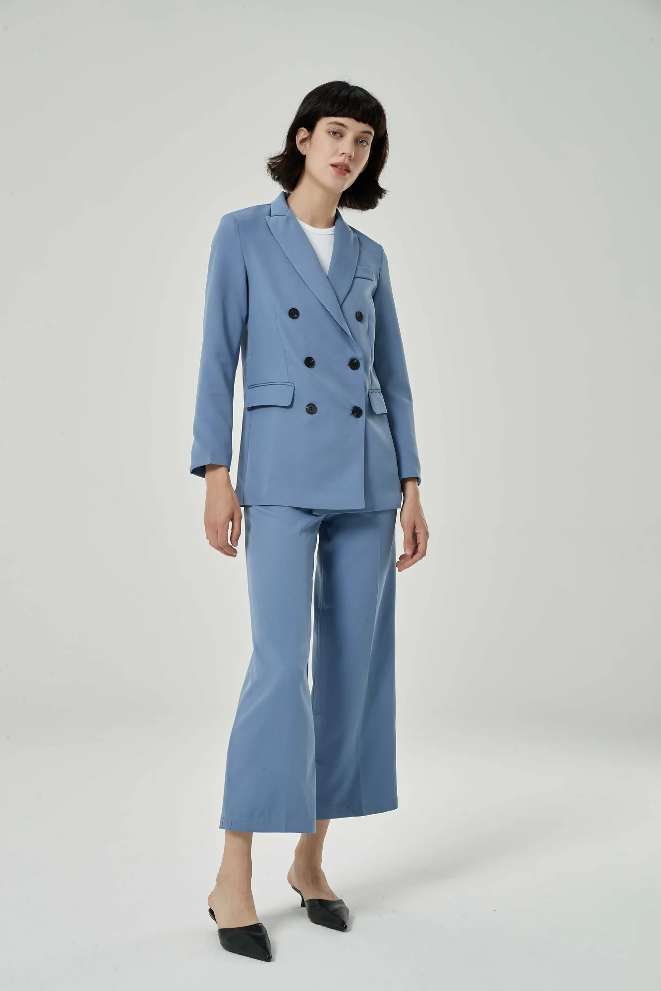 Женский костюм из двух предметов, голубой двубортный пиджак и повсе...