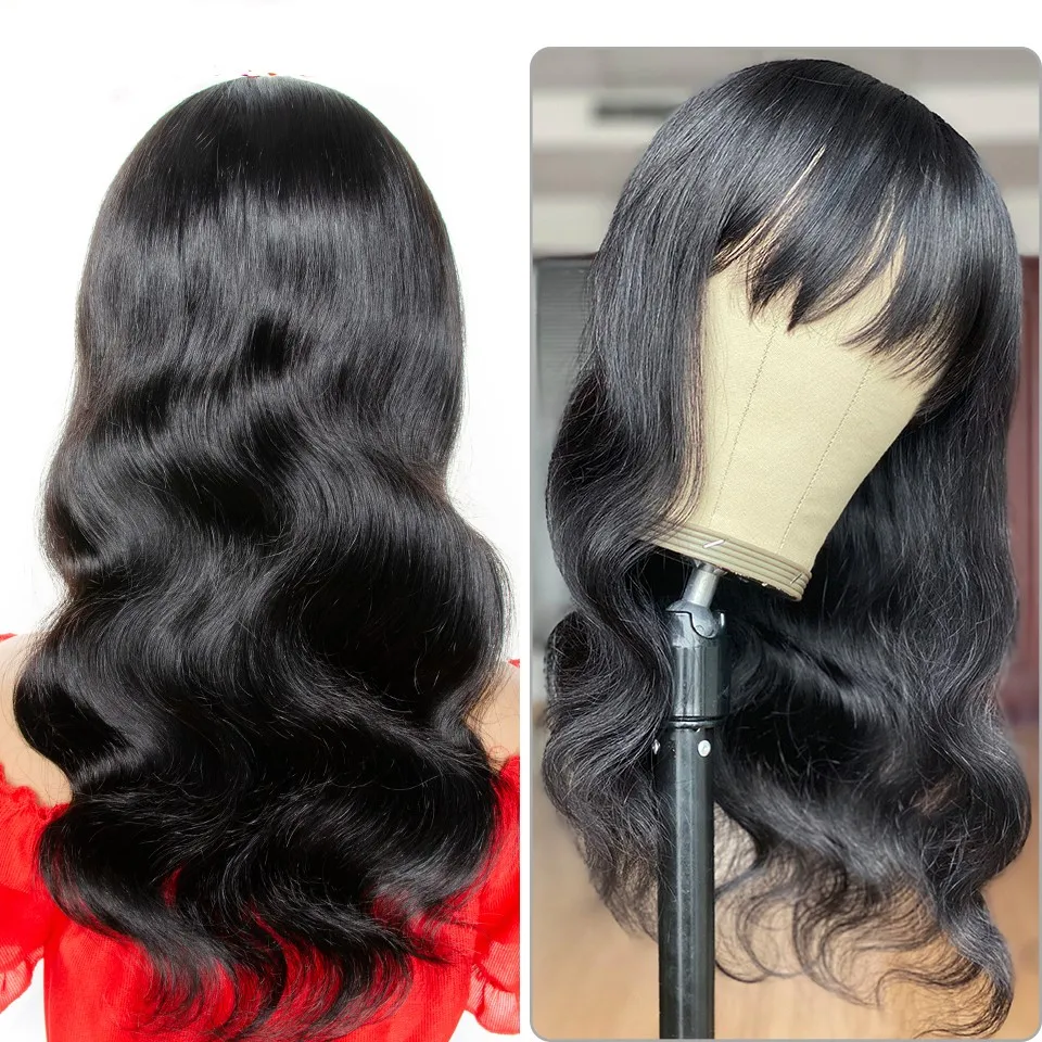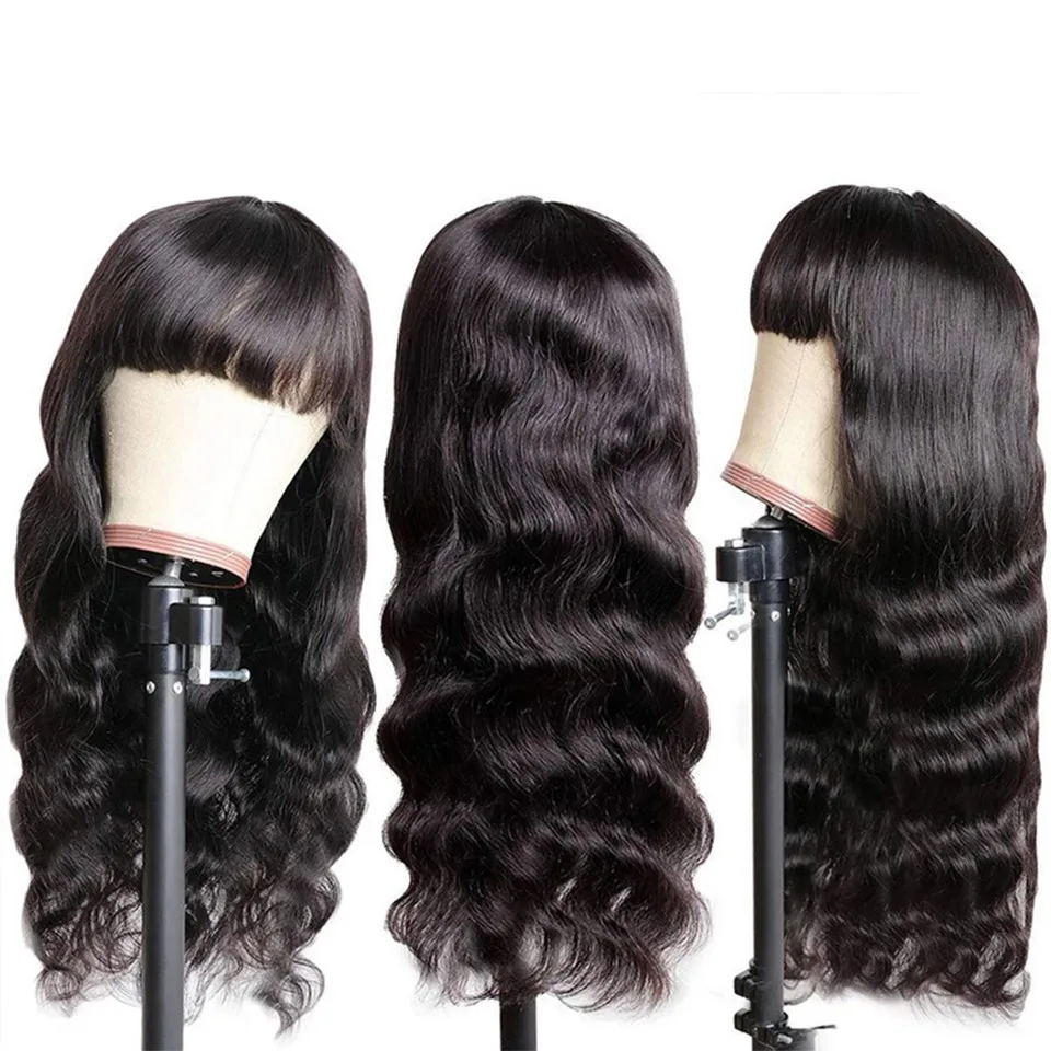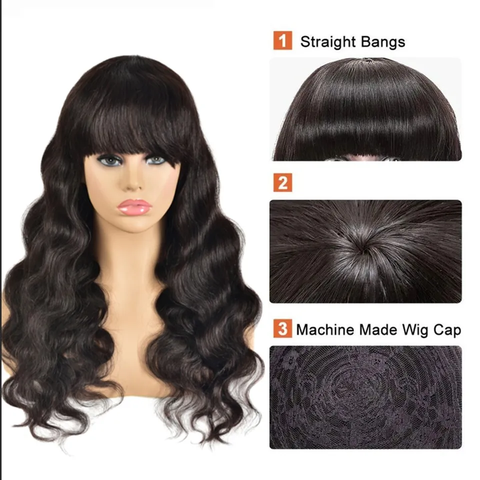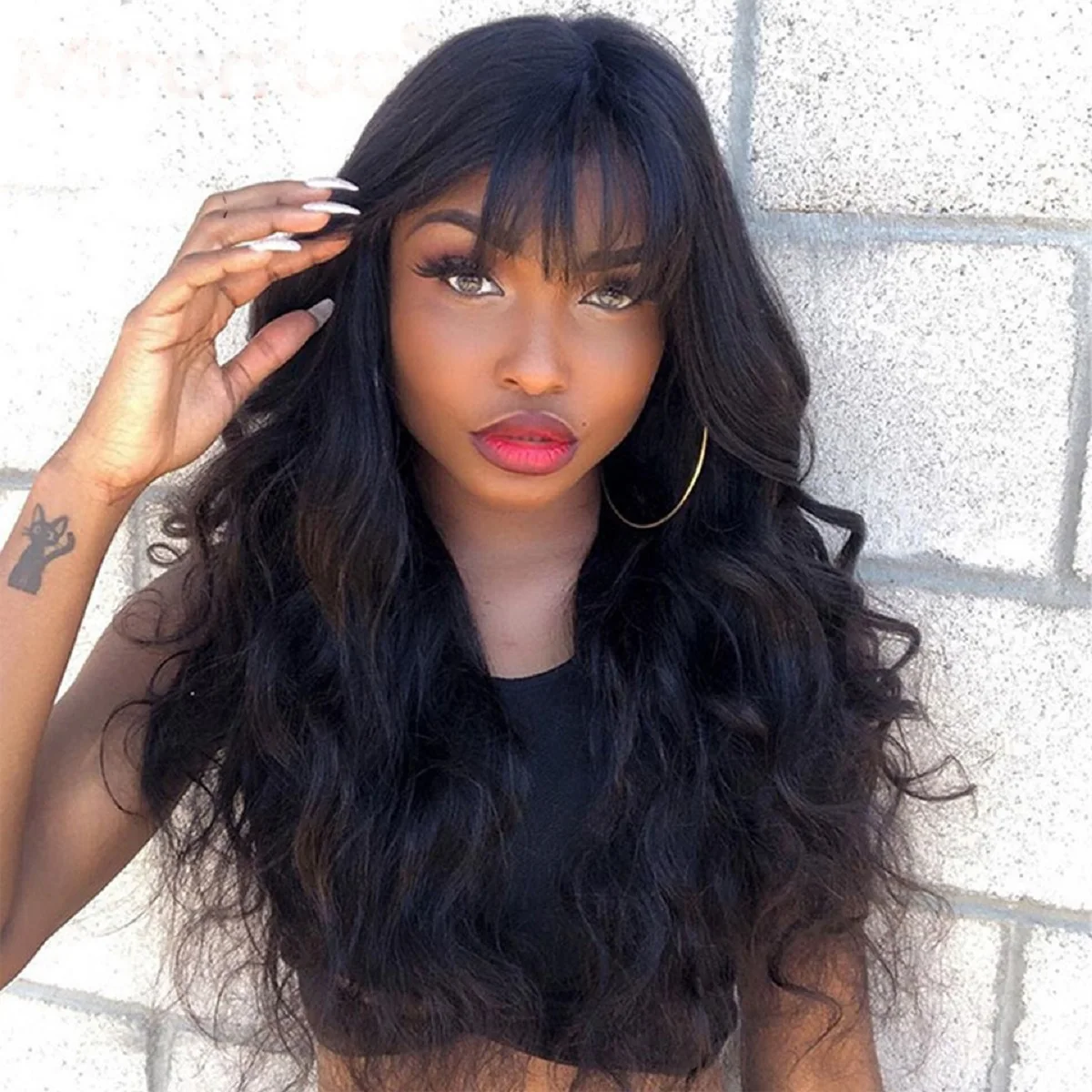 Длинные человеческие волосы, парики с челкой, бразильские волнистые волосы для тела, полный машинный парик с челкой, бразильские Remy человеческие волосы для женщин
