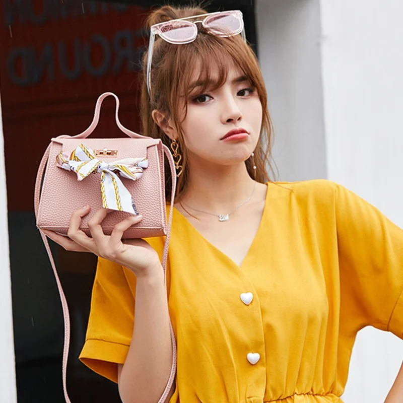 Женские маленькие сумки на плечо, модные сумки через плечо из искусственной кожи с шелковым шарфом, роскошные элегантные женские сумки-Кроссбоди с лентами, женская сумка