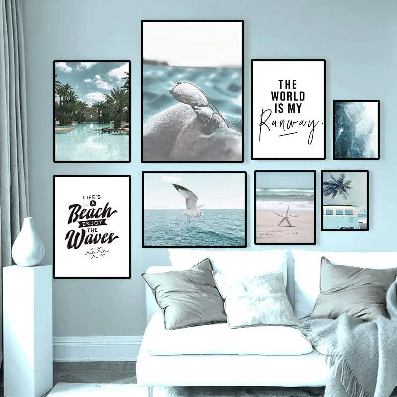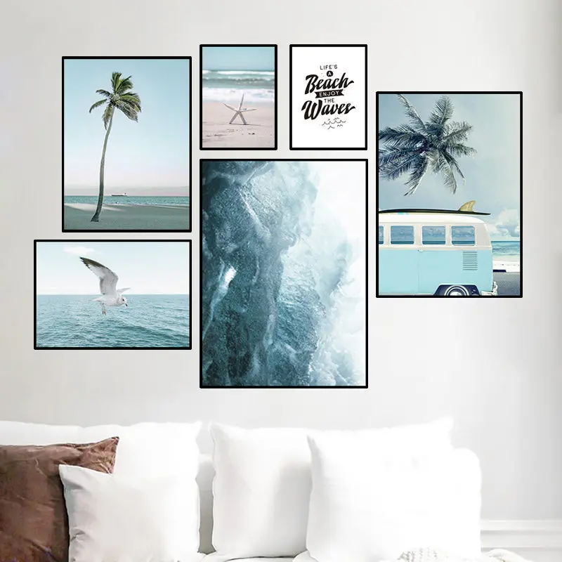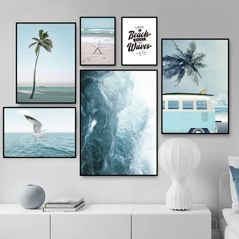 Постер с птицами в скандинавском стиле, современный пейзаж для путешествий, Художественная Картина на холсте, цитата, украшение для дома, море, пляжа, Настенный декор FJ017
