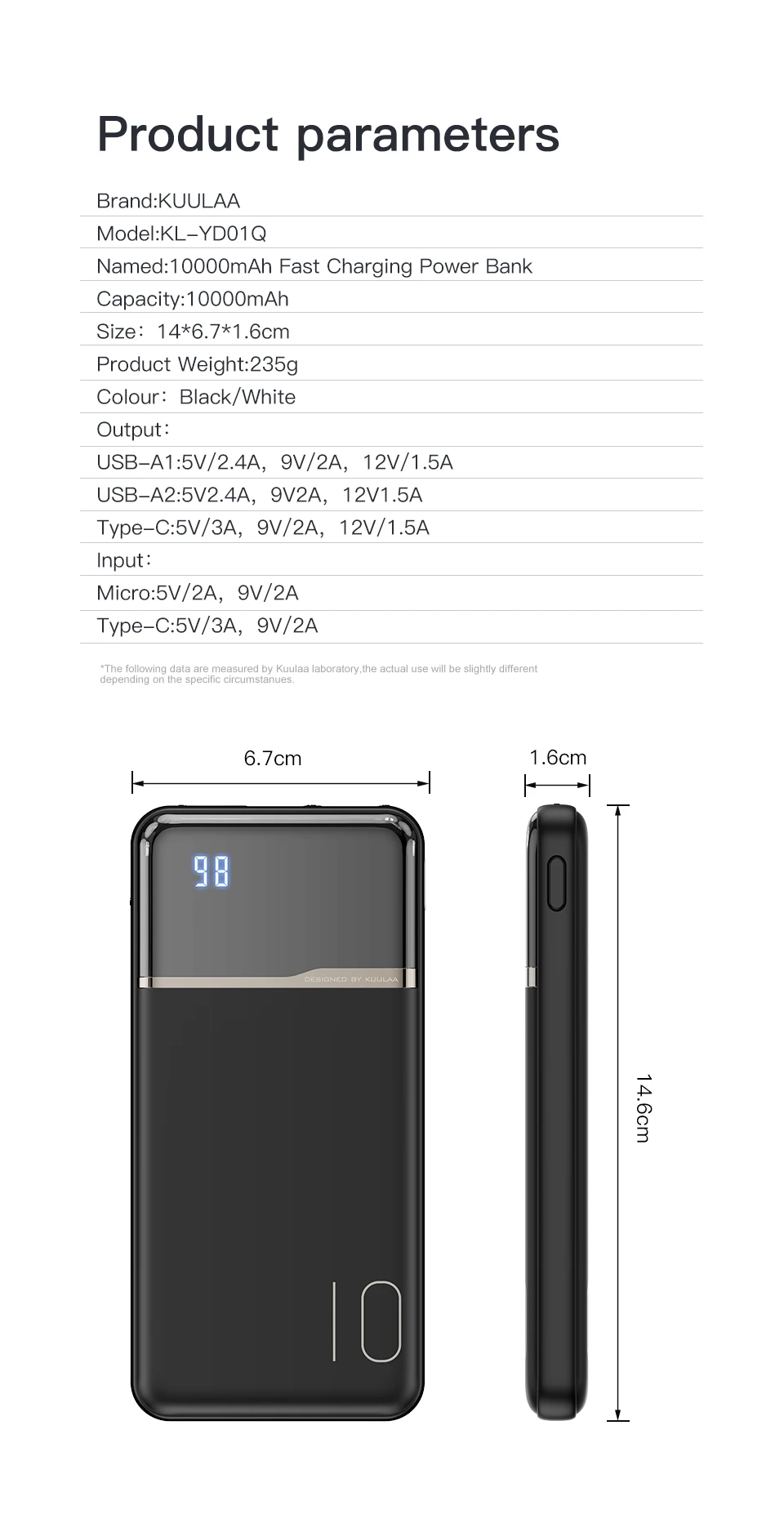 Внешний аккумулятор KUULAA мощностью 18 Вт на 10000 мА ч с поддержкой быстрой зарядки