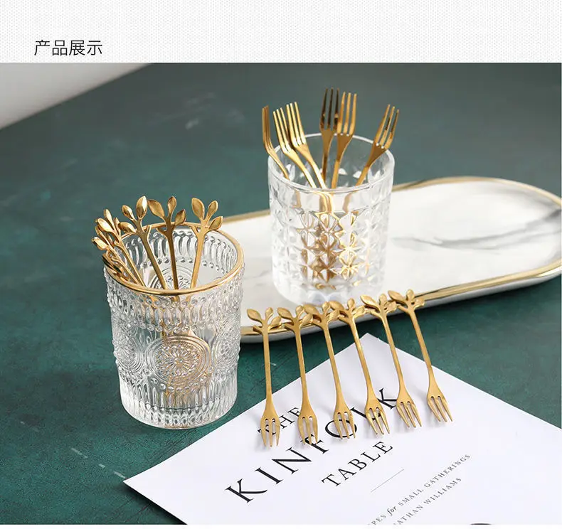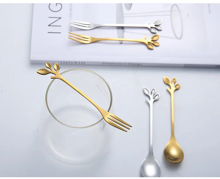 2 цвета Нержавеющая сталь ложки в виде листьев вилка чайная и кофей...