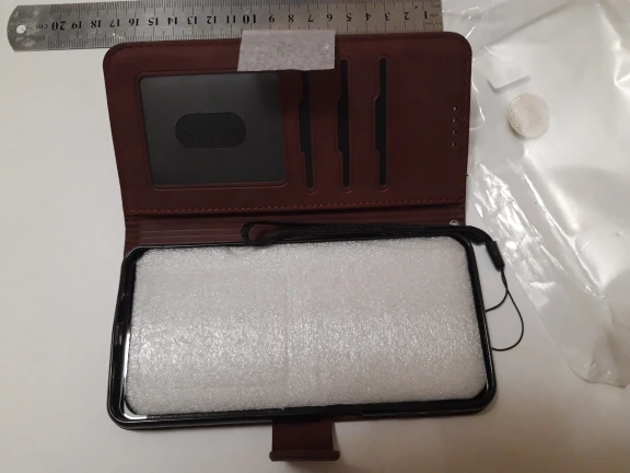 Товар долго не поставлялся, уже хотела вернуть деньги. Чехол для телефона пришел другого цвета и с потертостями внутри.