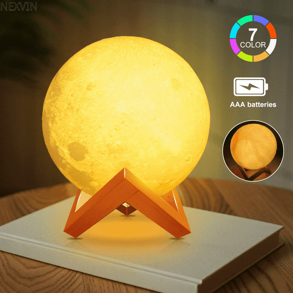 Светодиодный ночник, светильник 8 см, луна, лампа, 3D принт, декоративные светильники с подставкой, Нежный Домашний Светильник, украшение для комнаты, подарок для детей