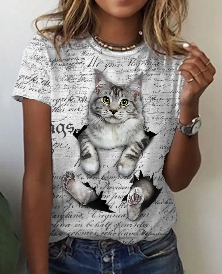 Женская футболка с 3D-принтом, летняя повседневная футболка унисекс с круглым вырезом и коротким рукавом, с изображением милого кота, животного, 2021