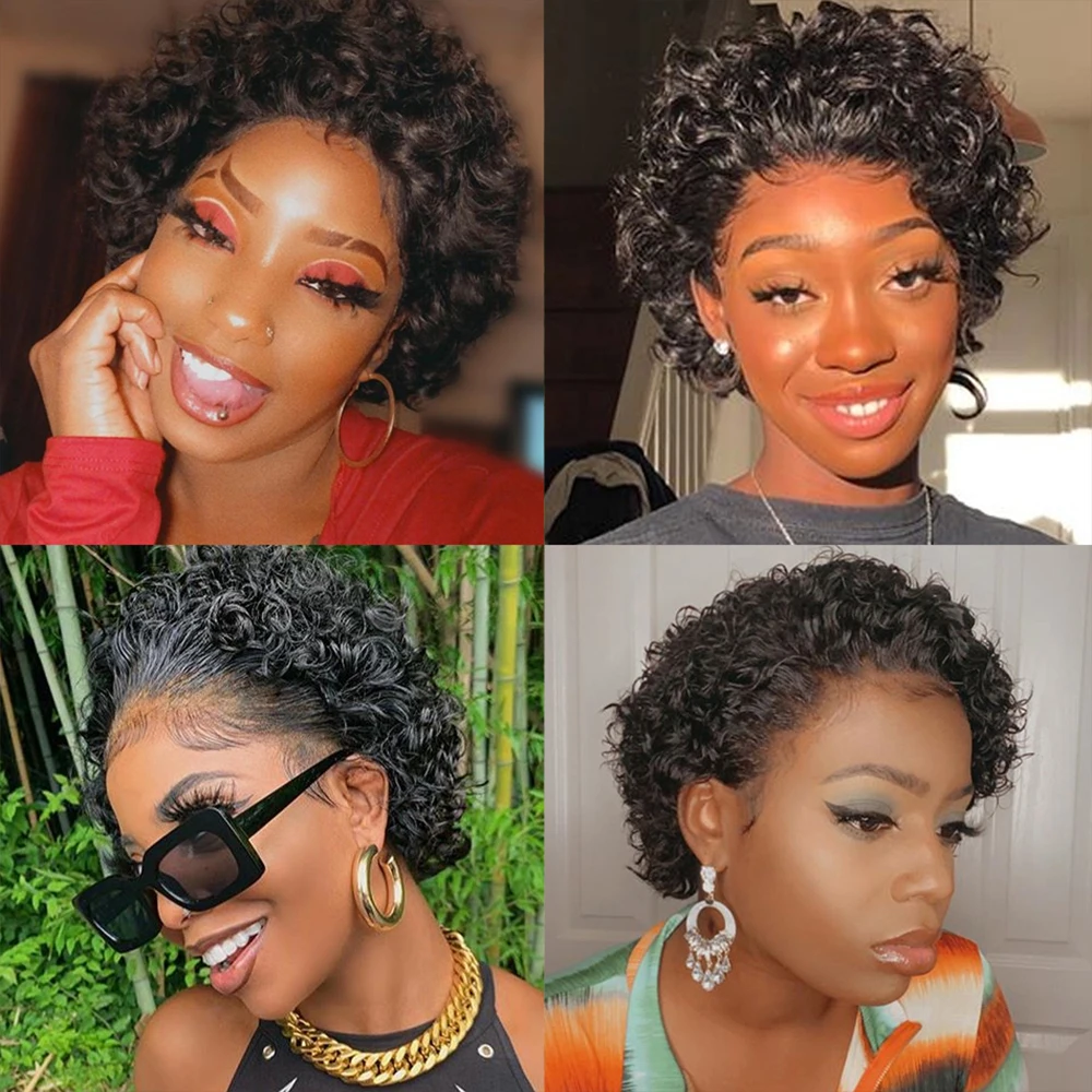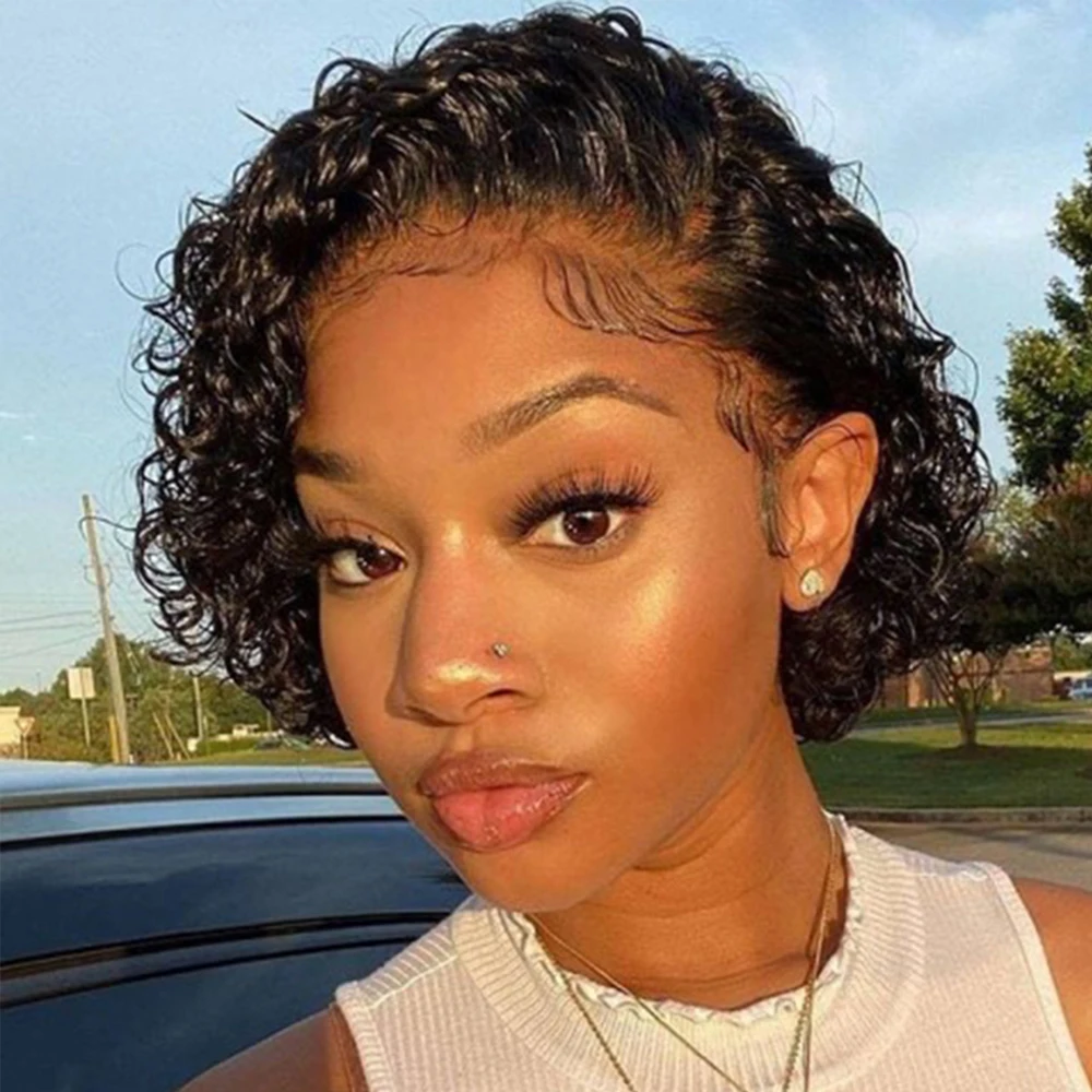 Sogreat Pixie Cut парик Короткие вьющиеся человеческие волосы парики для женщин prepucked Hairline бразильские волосы 13х1 прозрачный парик с кружевом