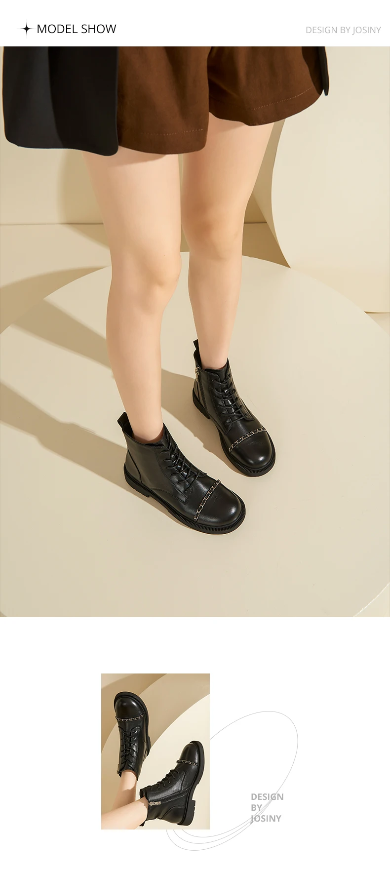 Женские ботильоны на шнуровке JOSINY, черные ботинки из мягкой иску...