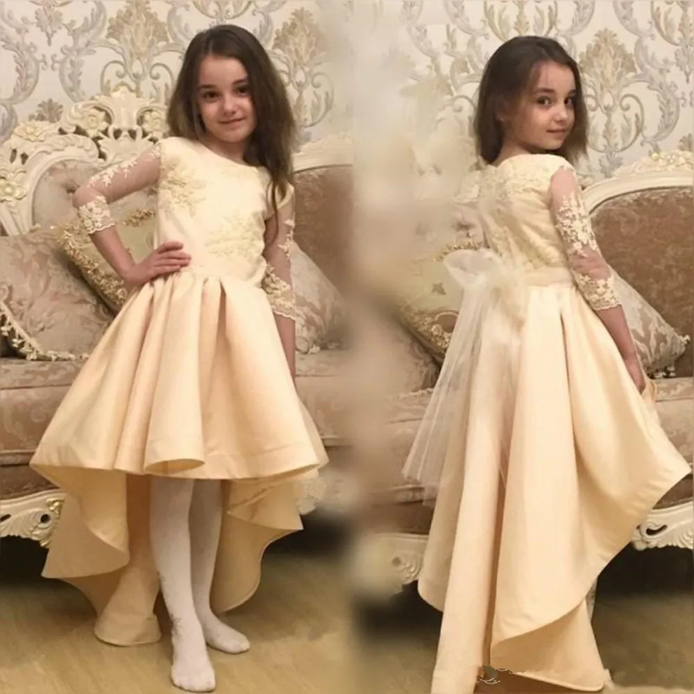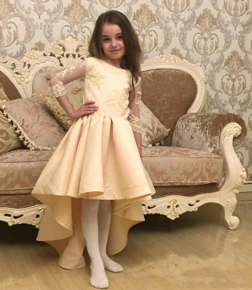 Роскошные кружевные платья с аппликацией и шлейфом для девочек, платья без рукавов для принцесс и маленьких девочек, нарядное платье для Дня святого причастия, дня рождения