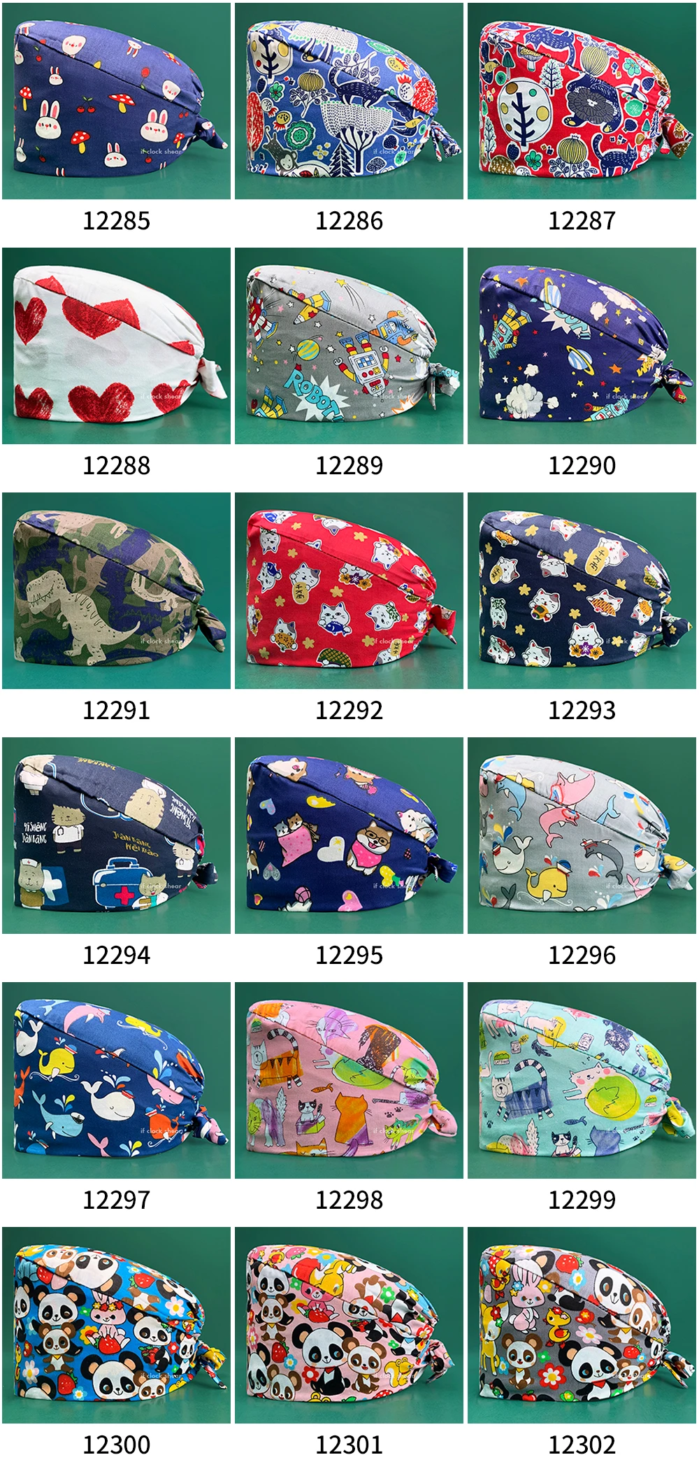 Регулируемые хлопковые медицинские шапочки с принтом животных